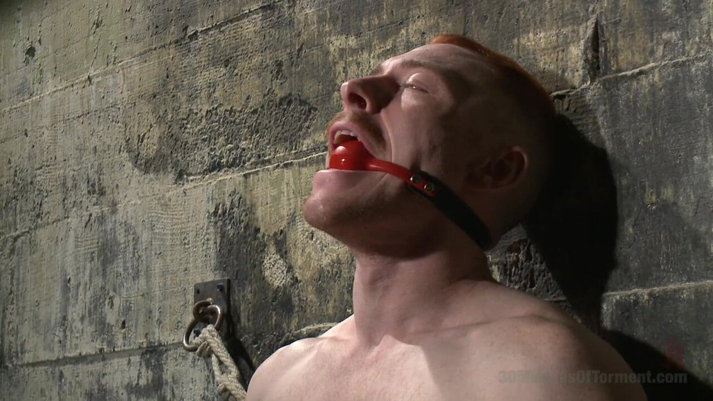 The Wall - Damien Moreau begins his challenge bound to the wall as Van gets his cock rock hard. Damien bites down on his ball gag as Van punches his chest on pulls on his balls. - The Pit - In the pit, Damien balances on wooden pegs while he’s relentlessly flogged. A dildo is shoved up his ass to hold him in place as his flogging continues. - The Water Chamber - With his hands bound above his head Damien is warmed up with the crop before having clothespins attached all down his torso. Water blasts Damien in the face and on the clothespins pinching his tender skin before Van challenges him to finally blow his load.