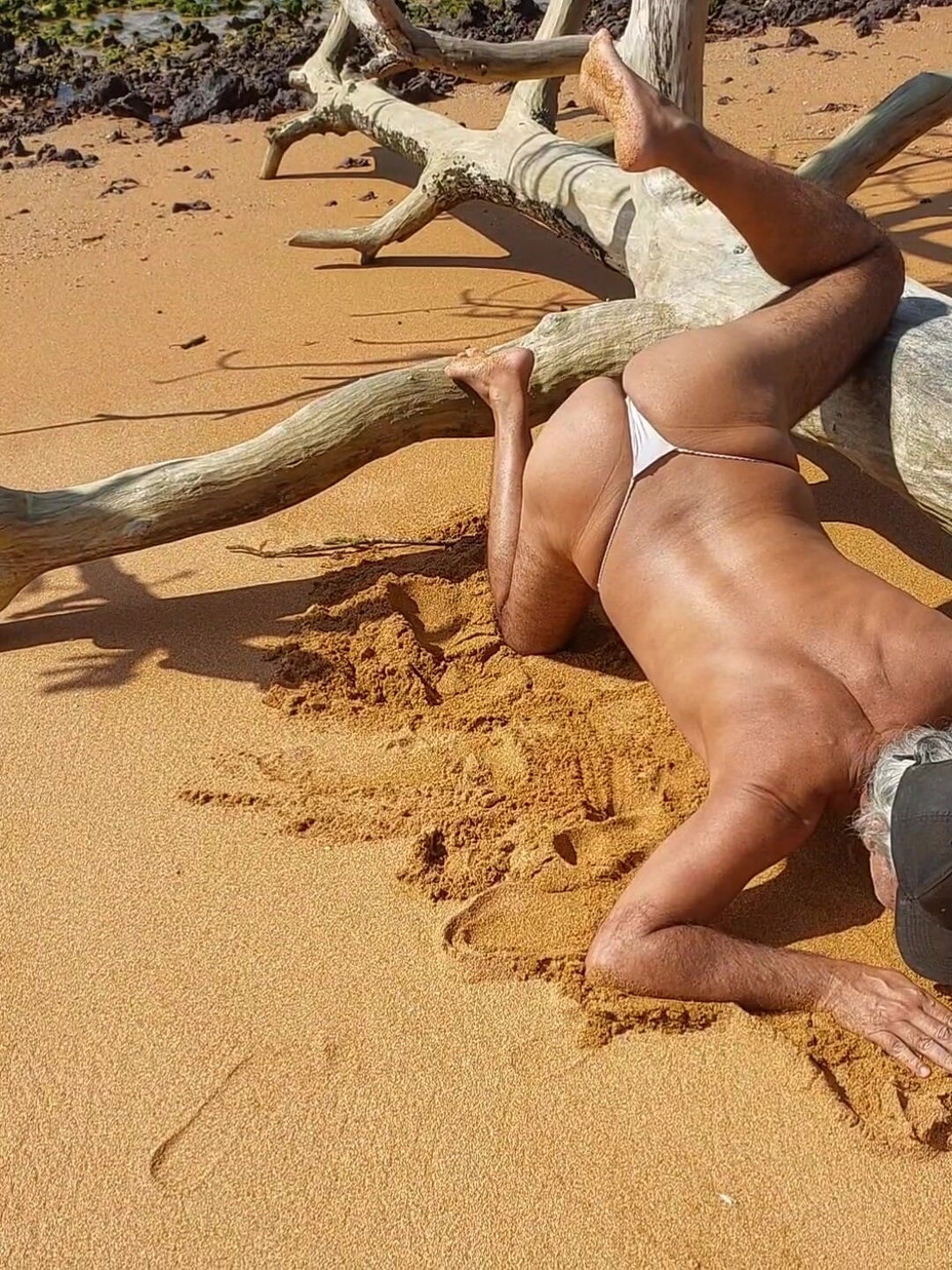 Ladysilvas: Ladysilva Crossdresser v kalhotkách na pláži