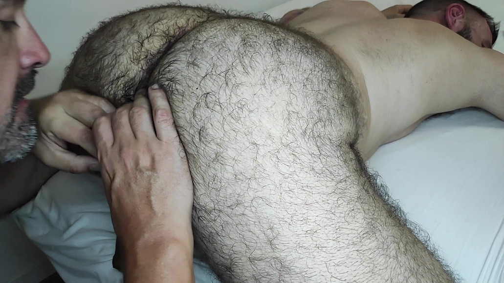 Fuck yeah, after that wild flip-fuck where we pounded each other's asses raw and sucked those throbbing cocks like total sluts, my beefy Argentine daddy goes all in, burying his face in my wrecked hole and rimming me deep with sloppy tongue thrusts, slurping up every bit of our mixed cum while I grind back on him like a horny bitch. He ramps it up—jams two fat fingers knuckle-deep into my stretched ass, hooking right onto my prostate like a fucking master, milking it hard until I'm squirting clear prostate fluid all over, my body quaking as I jerk my dripping dick like mad. Then I lose it, blasting thick ropes of hot load right across his stubbled face, glazing those cheeks and his open mouth while he smirks like the dirty bastard he is, scooping it up and growling for more in that hot accent.