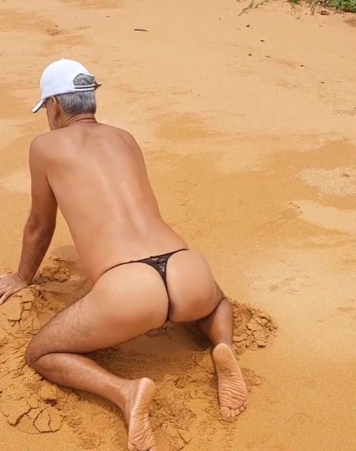 Ladysilvas: Ladysilva crossdresser en culotte sur la plage, cul sexy
