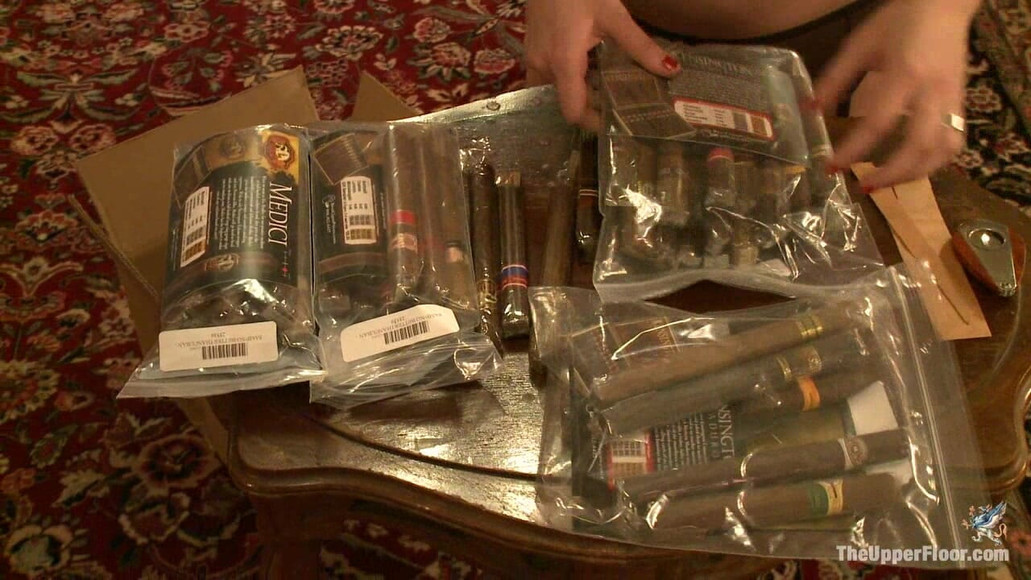 House slaves are taught the basics of cigar etiquette and service while tied in tight rope bondage.
