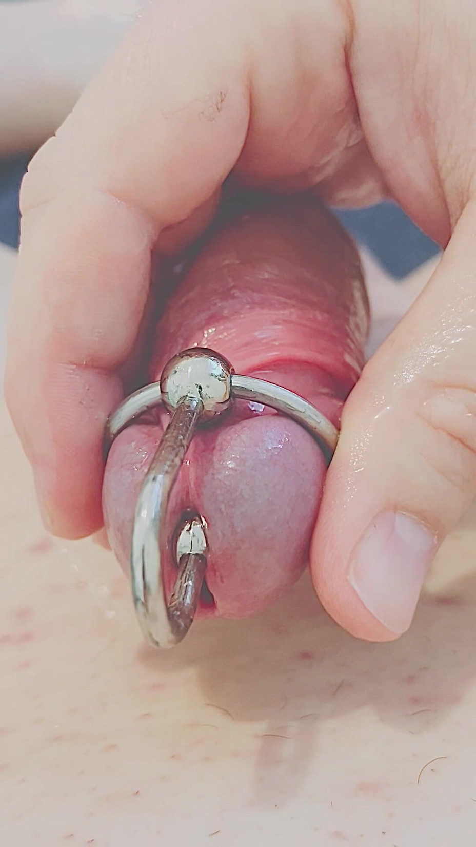 I'm playing with my cock this morning With my new ring to dilate the cock hole A delight I'm preparing for the arrival of my so that it flows more easily for you Tell me if you like it and give me other ideas