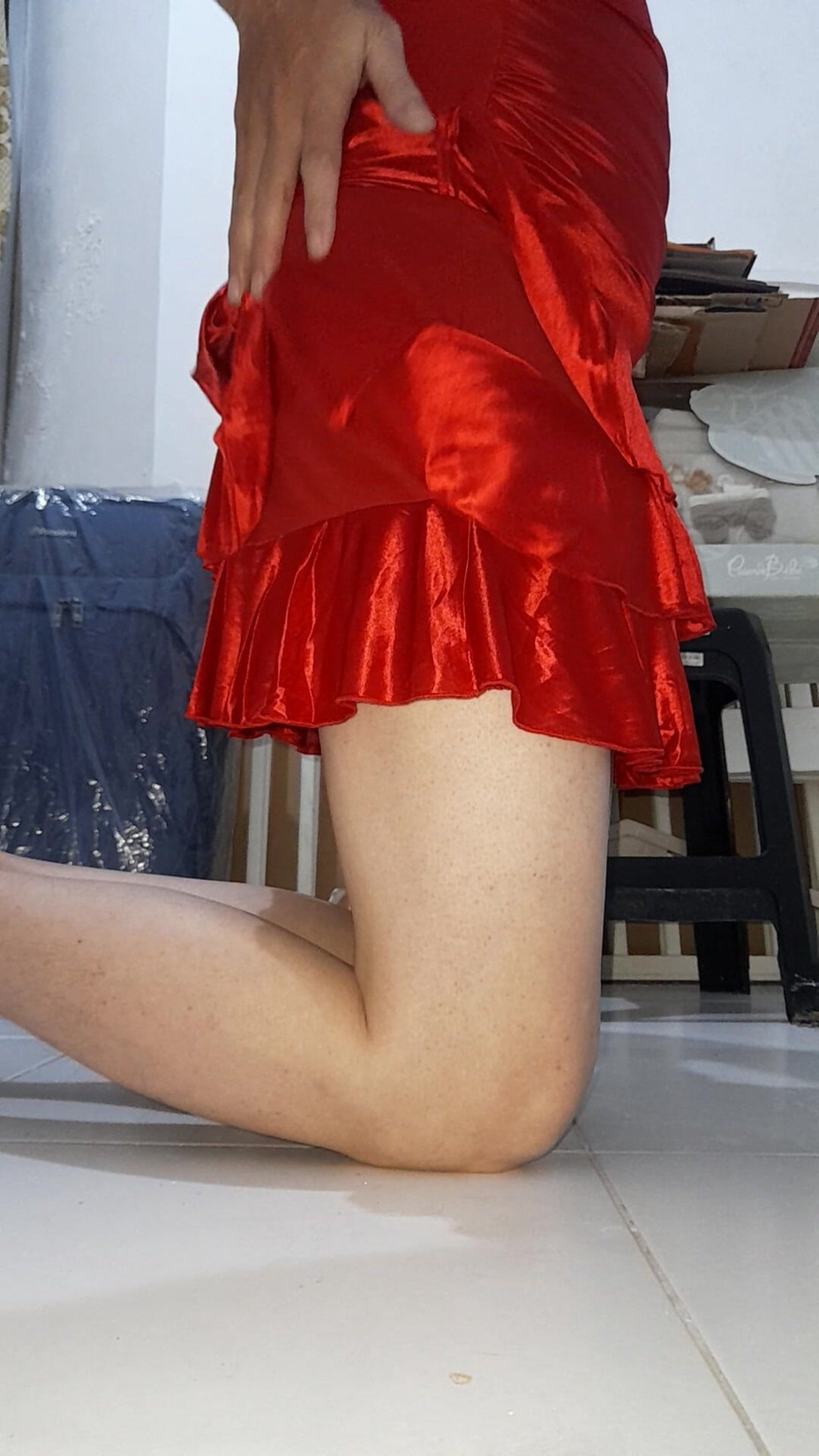 Naomisinka: Crossdressing Dan Memancut Mani Memakai Pakaian Mini Seksi Red Satin