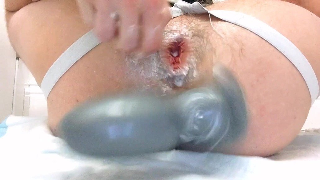absolute bliss-- trashing my fist hole with a huge toy, feels like getting punched. my hole's lips surrender and i push out a couple rosebuds