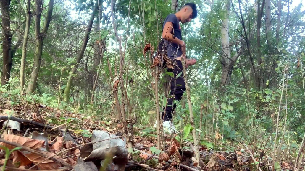 Step on used condoms, bottles, leaves, branches and jerk off - crush things and cum