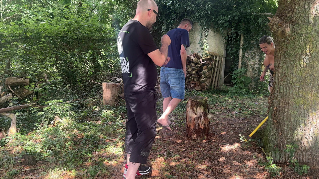 Yannick Shaft and Stéphane ProdX are having fun splitting logs. My friend Cat in Mini and I decided to take care of their big bubbles... Our tight little pussies loved it.