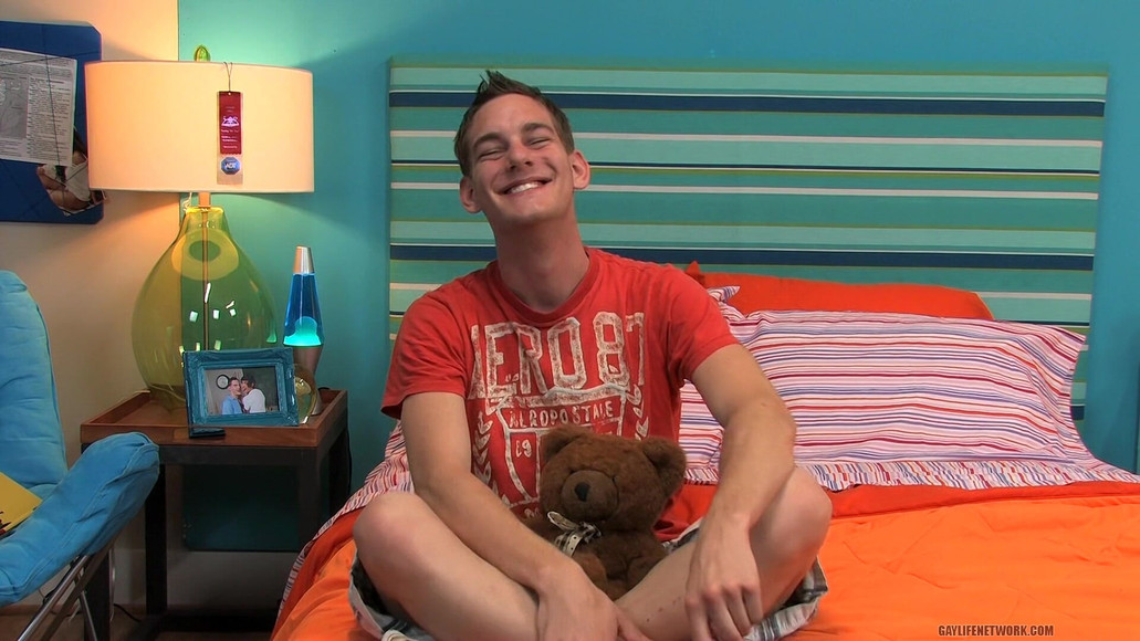 Dayn Muprhy is sitting in bed looking cute and he's giving an interview to help turn on the guys that are going to view his scene. He shares stories with us, including the time he gave a guy a blowjob in public. He's a little embarrassed to talk about it but he blew the guy outside a mall by the garbage cans. It's actually cute how nervous he is. He'll share some sexual fantasies with you, including having sex in the great outdoors.