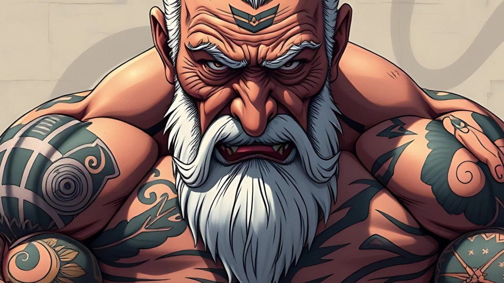 Slideshow style video featuring sexy AI generated men. All of the characters are 50 years old or older with beards and huge muscles.