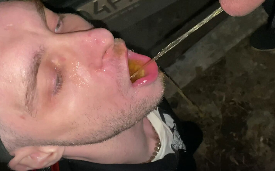 Leather Biker call Taxi but can't pay. Had to pay blowjob TaxiMan and get pissing on self