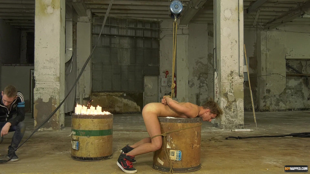 Gorgeous Ariel finds himself in an uncomfortable, though not unfamiliar, position, tied over a barrel with his arse up. Anyone who knows horny Ashton would also know that he can't walk by such a tempting sight without making use of the offering. The candle burning nearby should indicate how this is gonna go, and once he's had a taste of that delectable little rump he's making use of them and causing Ariel to cry out in pain. With molten wax poured all over the boy's back and butt cheeks Ashton finally feels ready to reveal his big dick, jabbing it into that wet hole and fucking the boy until he's done and his cum is launching out to join the wax dripping over Ariel's naked body.