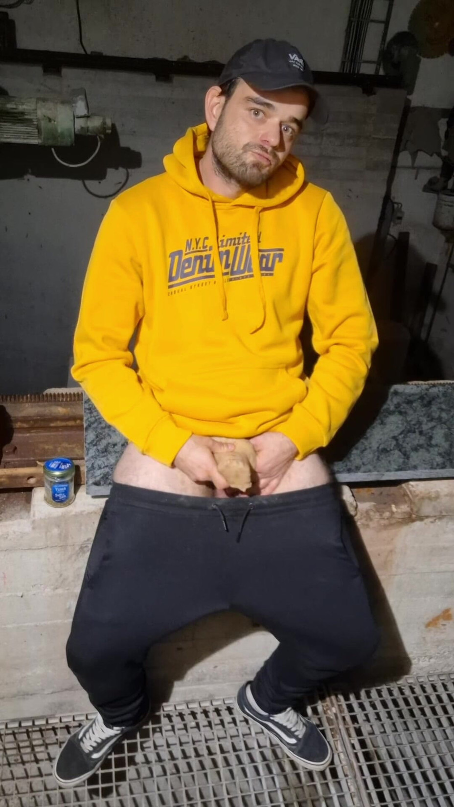 in a yellow sweatshirt, black sweatpants, white socks and VANS sneakers and with a skateboard. The compilation is with videos made in one night.