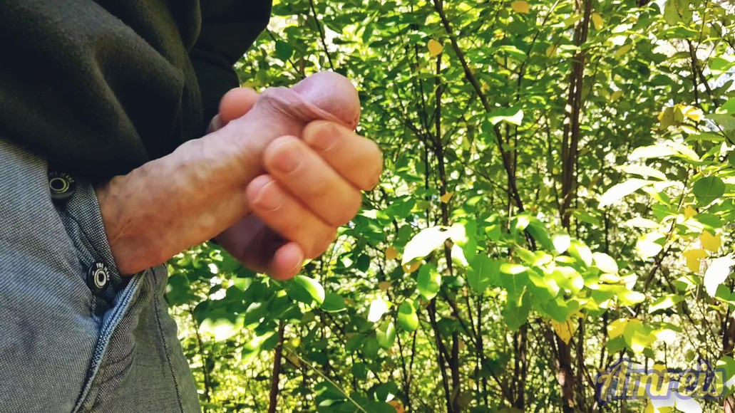For the first time this fall, I was able to walk in the forest, near the road. And I did not miss the moment not to walk my excited penis. This walk ended with a splash of white seed on native plants.