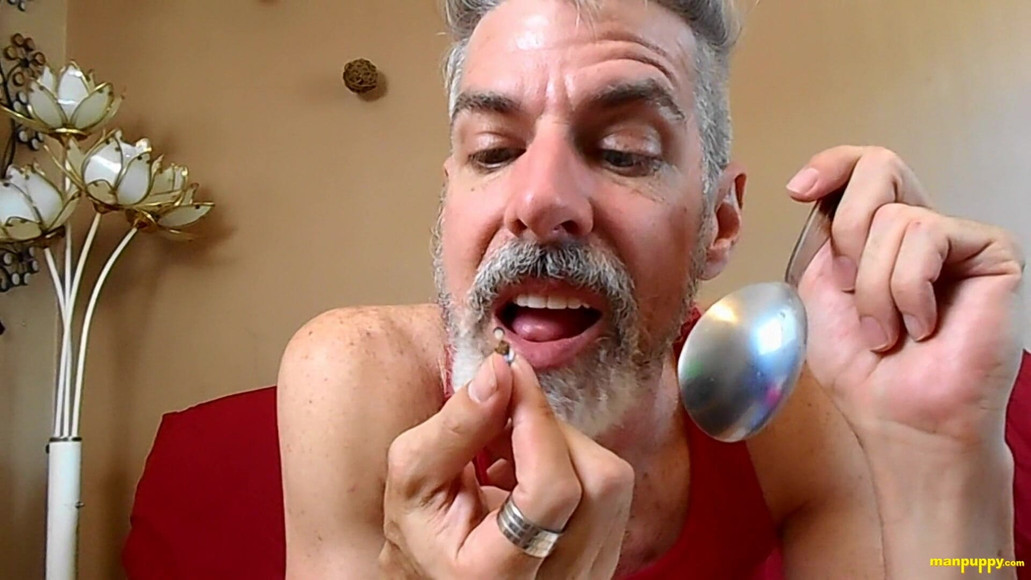 Your gross giant daddy is having his morning cereal. You're tiny, so every disgusting glob he drips into his beard is all the more vivid and in your face. He sees that you're hungry, too, and picks you up to sit on the side of his spoon to eat your fill with him. Over and over, his colossal giant mouth just misses eating you. He smacks his enormous lips and talks to you with his mouth full, milk and half-chewed bits of sugary morsels spewing and dripping down his chin and occasionally spewing into your face. Maybe you should dive in and end your misery.