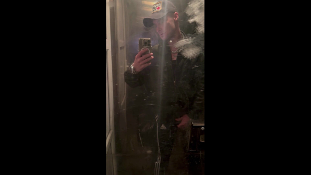Chav Scally in leather and sport gear sneakers